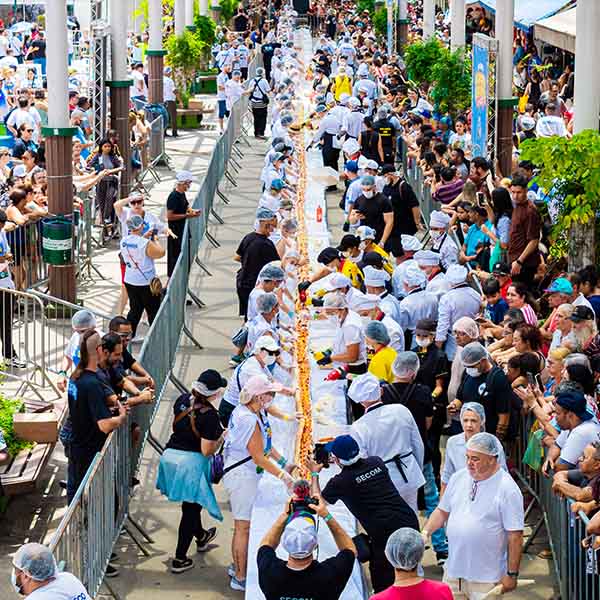 Em comemoração aos 64 anos de emancipação político-administrativa, Osasco prepara uma celebração especial como um dos eventos mais tradicionais da cidade: o Cachorro-Quente Gigante. No dia 28 de fevereiro, a partir das 12h, o Calçadão da Rua Antônio Agú será palco da montagem de um lanche de 64 metros, superando a marca do ano passado. Além do lanche principal, serão distribuídos 8.000 lanches individuais, cada um composto por dogão e refrigerante, totalizando mais de 9 mil cachorros-quentes. Para a edição de 2026, os números impressionam: 5 pães de 10 metros e 2 de 7 metros, 15 mil salsichas, 200 kg de purê, 10 kg de batata palha, 40 litros de ketchup, 40 litros de mostarda e 10 kg de queijo ralado. A montagem será conduzida por uma equipe técnica de 40 profissionais, entre padeiros, nutricionistas, supervisores e técnicos em panificação, com apoio logístico e de segurança. Além de 40 dogueiros da cidade, a Vigilância Sanitária acompanhará todo o processo para garantir a qualidade dos alimentos, enquanto a Guarda Civil Municipal assegurará a ordem durante o evento. Reconhecido como patrimônio cultural e imaterial pela Lei nº 5.279/2023, o Cachorro-Quente Gigante reforça a identidade de Osasco como a capital do cachorro-quente, pela quantidade de carrinhos do lanche espalhado pelos centros comerciais. Há cachorro-quente para todos os gostos: duas salsichas ou três, no prato, na marmita, de metro, e com todos os acompanhamentos. A cidade busca superar os recordes conquistados em 2023, 2024 e 2025, quando obteve os títulos de Maior Cachorro-Quente Contínuo do Brasil e Maior Distribuição de Cachorro-Quente. Serviço Cachorro-quente de 64 metros – Aniversário de Osasco Data: 28/02 Horário: 12h Local: Calçadão da Rua Antônio Agú – Centro Entrada: gratuita